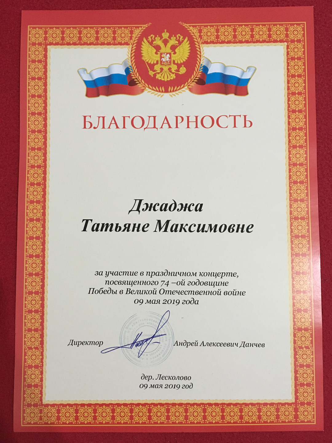 9 мая, концерт проходил на площади перед ДК, собралось много местных жителей, было очень волнительно выступать.